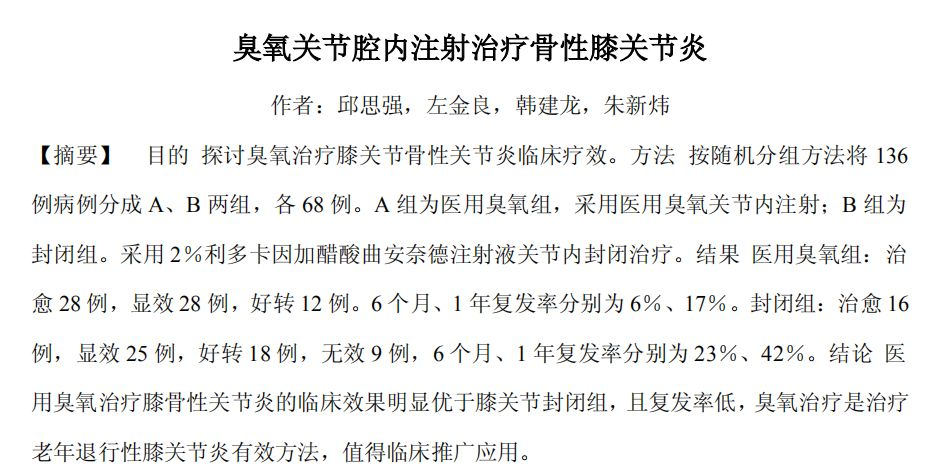 治疗关节类疾病采用臭氧关节腔注射或关节外周注射。