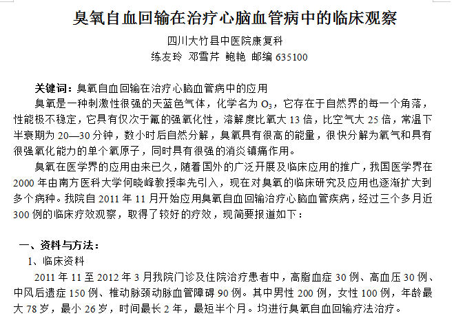 臭氧调整血管功能,改善血液供应,可应用于缺血性心脏疾病;