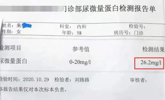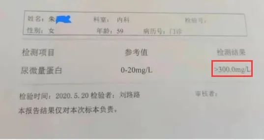 化验:尿微量白蛋白大于300mg/l (2020-5-20)