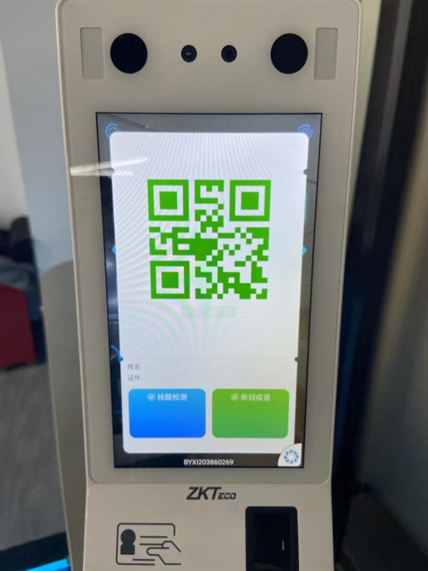 第二步:持证人员到达门禁区,在闸机处刷证件二维码,闸机联通陕西一码通,证件有效且持48小时核酸报告,符合疫情防控要求,闸机开闸,人员入场。