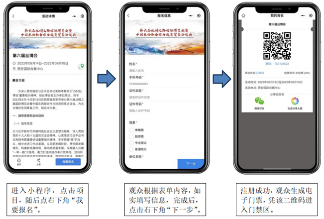 第一步:关注丝博会微信公众号或扫码进入丝博会小程序,完成实名登记,生成电子门票。