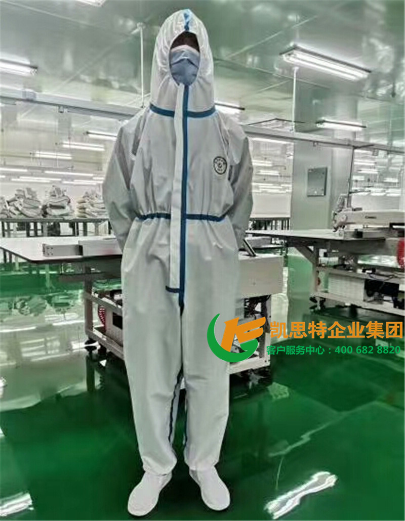 【产品材料】医用透气复合膜为主要原材料,为高级医用防护材料,经裁剪缝纫制成加厚型衣帽一体连体服,手腕处,脚踝处均有弹性收口,材质轻盈、透气。