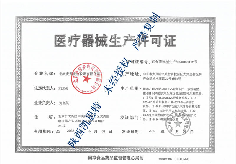 医疗器械生产许可证编号:京食药监械生产许20030112号